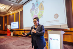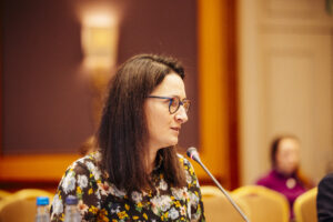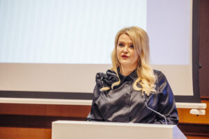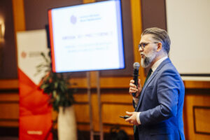 Dr Marlena Kondrat z Krajowego Instytutu Gospodarki Senioralnej mówiła o miejscu seniorów w procesie cyfryzacji oraz ich potrzebach korzystania z rozwiązań umożliwiających kontakt ze specjalistami medycznymi. Podkreślała ważność zapewnienia sprawiedliwego dostępu do technologii cyfrowych oraz edukacji w obszarze zdrowia.