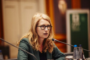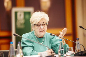 Katarzyna Kotula, ministra ds. równości zwróciła uwagę uczestników na to, że zbliżająca się polska prezydencja w Radzie Unii Europejskiej będzie już drugą pod rządami premiera Donalda Tuska, ale pierwszą, podczas której w skład Rady Ministrów wchodzi konstytucyjna ministra ds. równości. Zapewniała, że podczas sześciu miesięcy polskiej prezydencji w Radzie Unii Europejskiej kwestie praw reprodukcyjnych Polek, a szerzej całej tematyki równości płci, trafią na pewno do głównego nurtu polityki. – Stawiam sobie za cel, by do końca 2027 roku Polska stała się krajem w pełni regulującym prawa reprodukcyjne kobiet i zapewniającym szeroki dostęp do świadczeń medycznych. Jedną z moich pierwszych decyzji jako ministry ds. równości była zmiana stanowiska Polski w zakresie dyrektywy unijnej dotyczącej przeciwdziałania przemocy. Zawierała ona słynny artykuł piąty, zmieniający definicję gwałtu. Prezydencja belgijska nie zdecydowała się go zachować. Niezależnie od tego zmieniliśmy stanowisko z negatywnego na pozytywne, więc stawiamy te małe, ale konsekwentne kroki naprzód – podkreśliła Katarzyna Kotula.