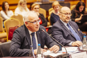 Sesja otwierająca wydarzenie z udziałem prof. dr. hab. n. med. Bolesława Samolińskiego z Warszawskiego Uniwersytetu Medycznego, dr. Adama Jarubasa, posła do Parlamentu Europejskiego i przewodniczącego stałej Podkomisji Zdrowia Publicznego (SANT); prof. dr. hab. n. med. Piotra Czauderny, przewodniczącego Rady ds. Ochrony Zdrowia przy Prezydencie RP i kierownika Katedry i Kliniki Chirurgii i Urologii Dzieci i Młodzieży Gdańskiego Uniwersytetu Medycznego; Wojciecha Koniecznego, sekretarza stanu w Ministerstwie Zdrowia; Magdaleny Sobkowiak-Czarneckiej, podsekretarza stanu w KPRM, pion ds. Unii Europejskiej; Krzysztofa Patera, wiceprzewodniczącego Europejskiego Komitetu Ekonomiczno-Społecznego; dr. Andrzeja Rysia Principal Scientific Advisor w Dyrekcji Generalnej ds. Zdrowia i Bezpieczeństwa Żywności (DG SANTE) Komisji Europejskiej; Lecha Pilawskiego, członka Europejskiego Komitetu Społecznego, Doradcy Zarządu Konfederacji Lewiatan; Marcina Rynkowskiego, Przewodniczący Grupy EU Pharma Strategy INFARMA, b. Dyrektora Departamentu Współpracy Międzynarodowej w Ministerstwie Zdrowia.